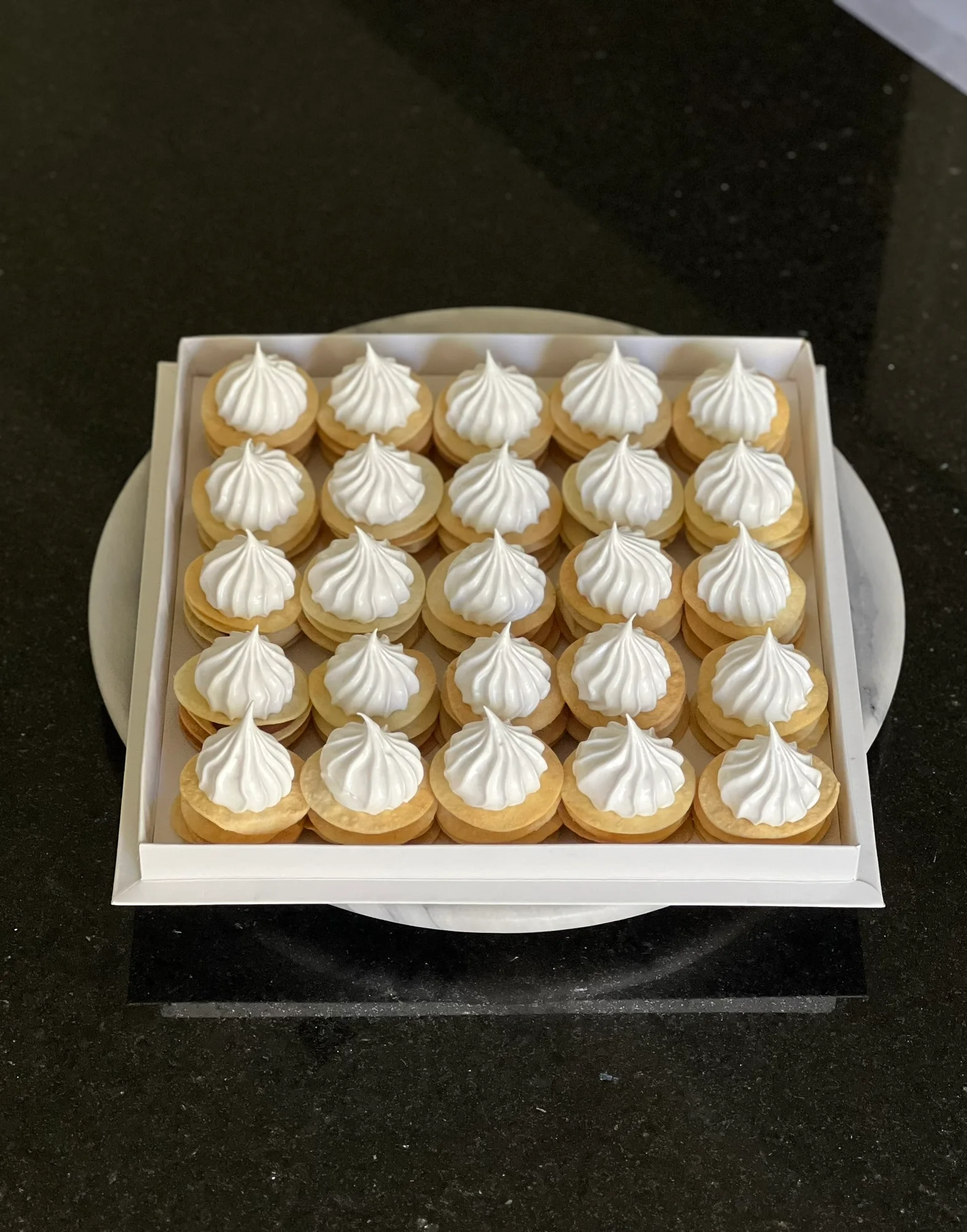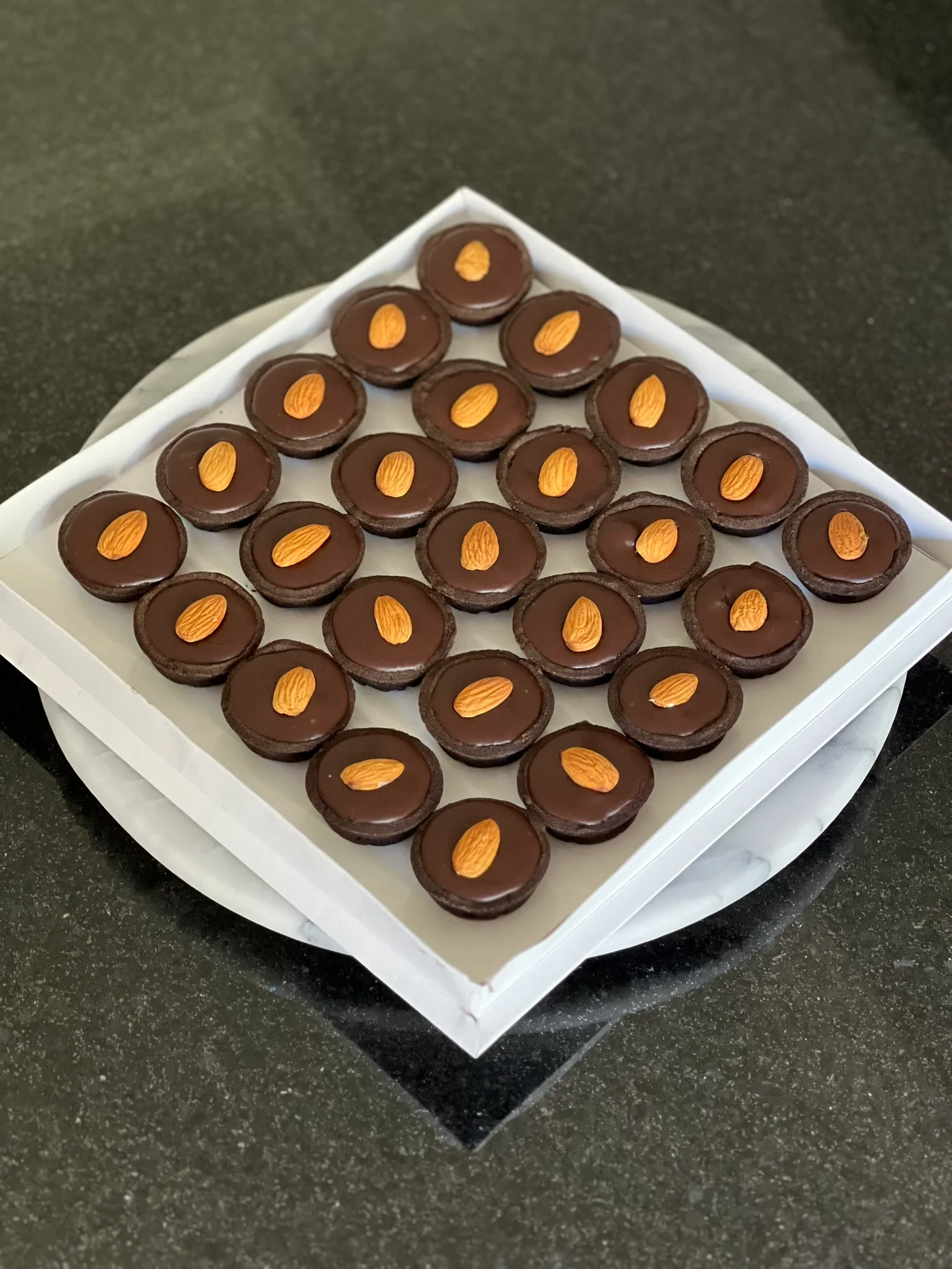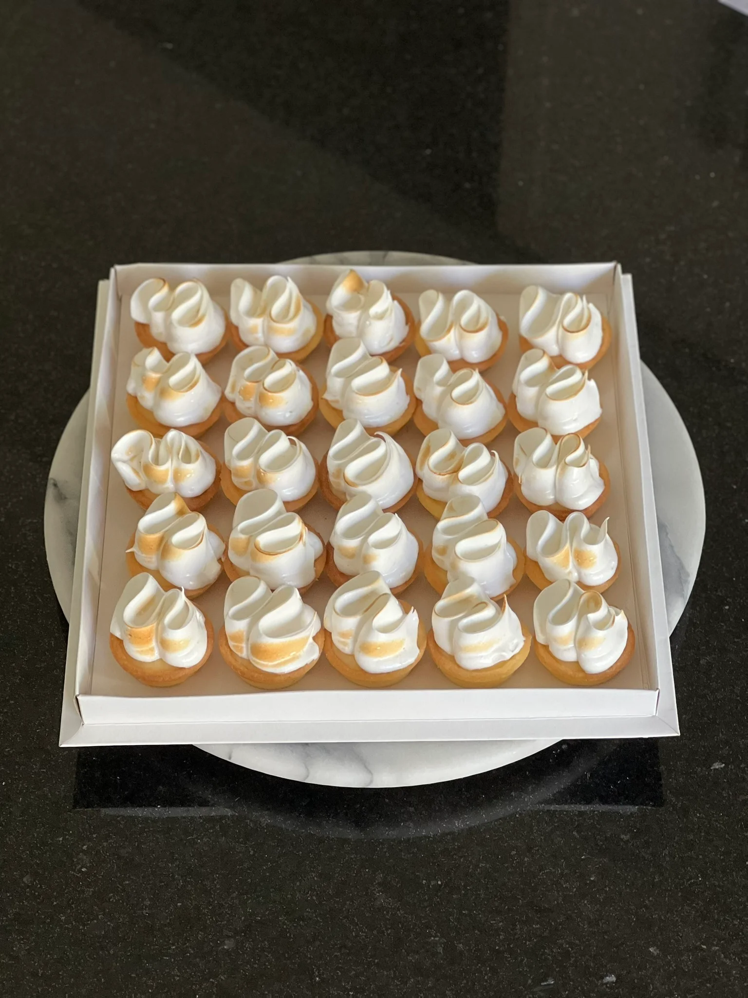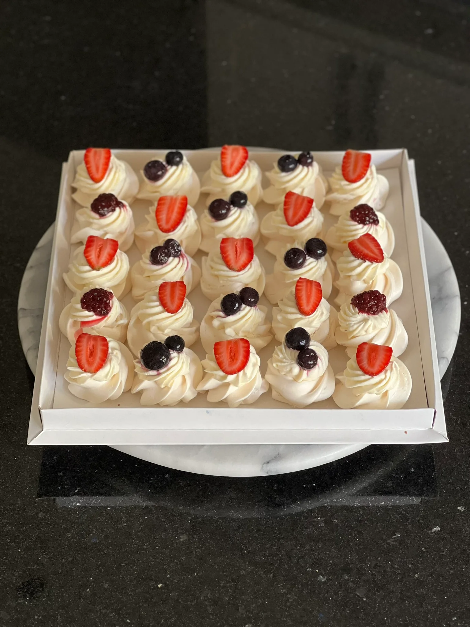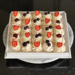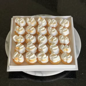 Mini pastelería de aprox 4.5/5cm de diámetro, exhibidos en una bandeja de 24 cm.
