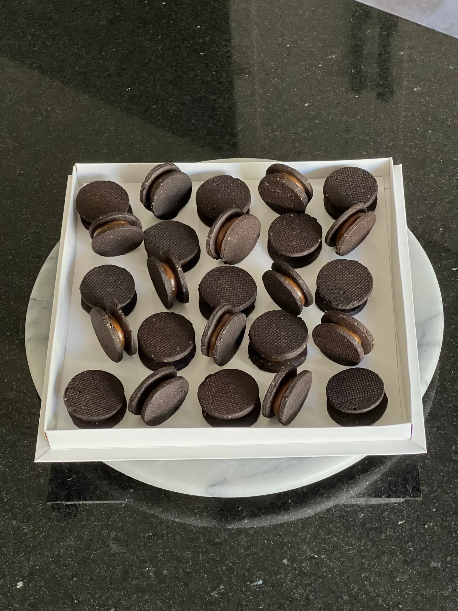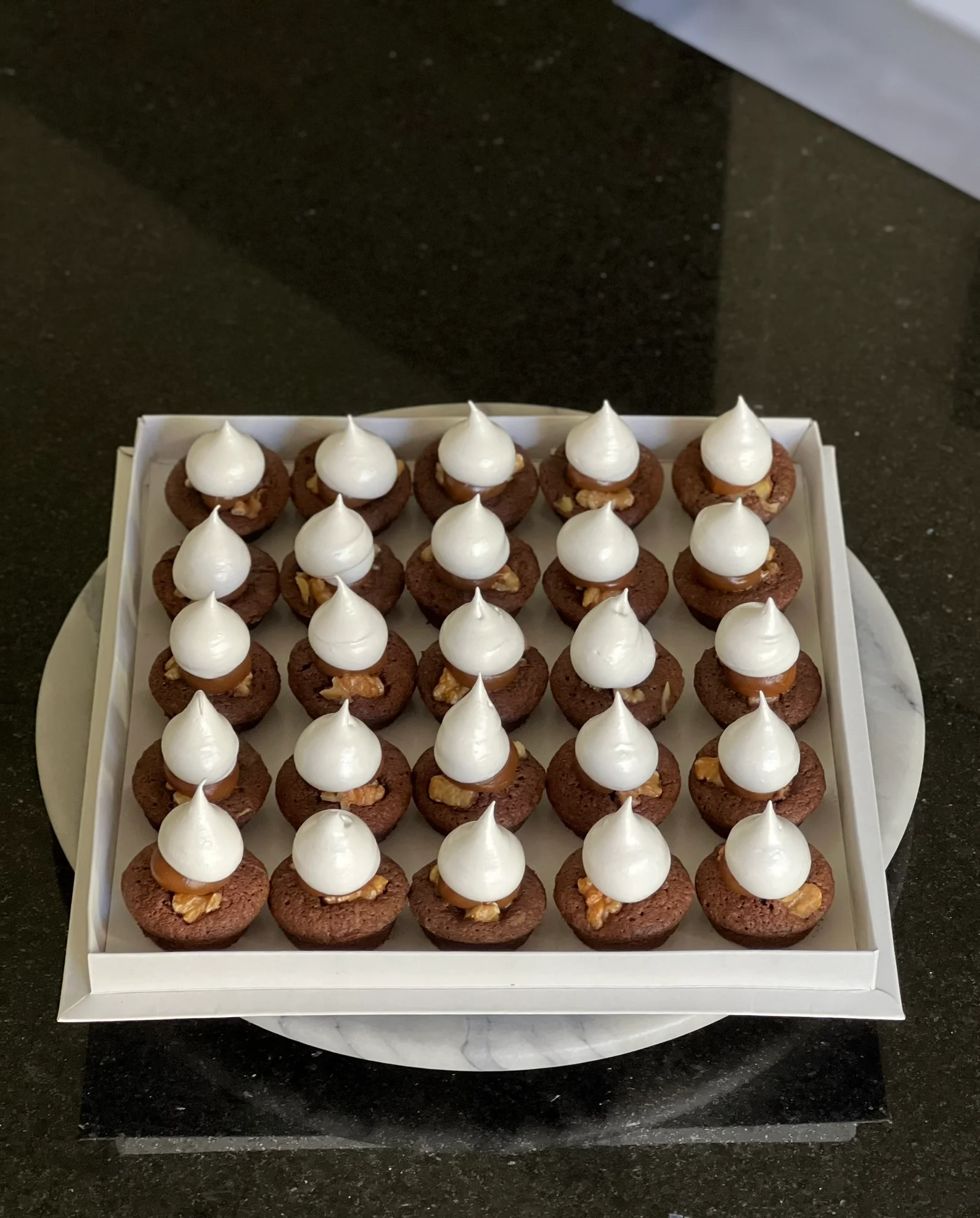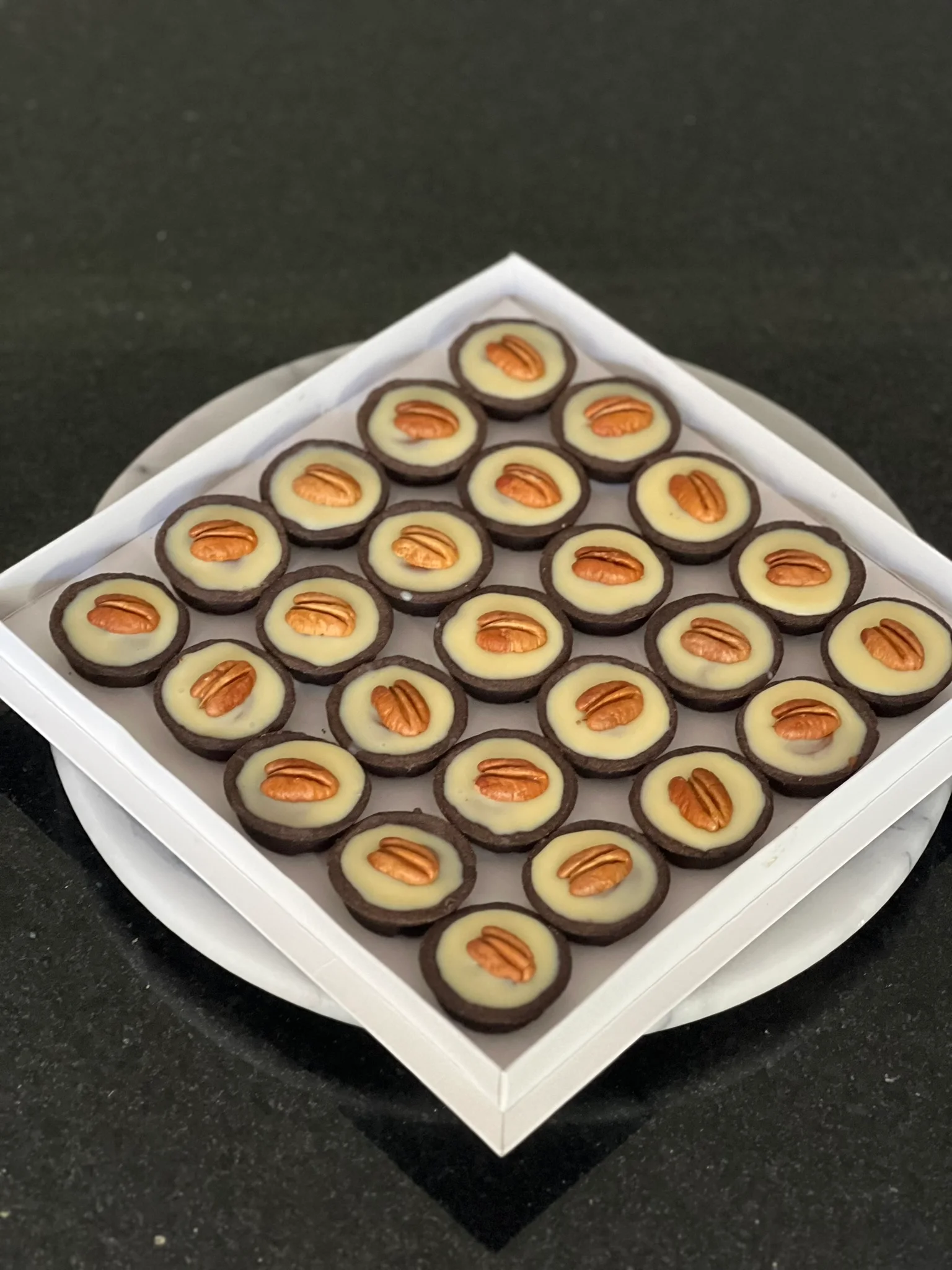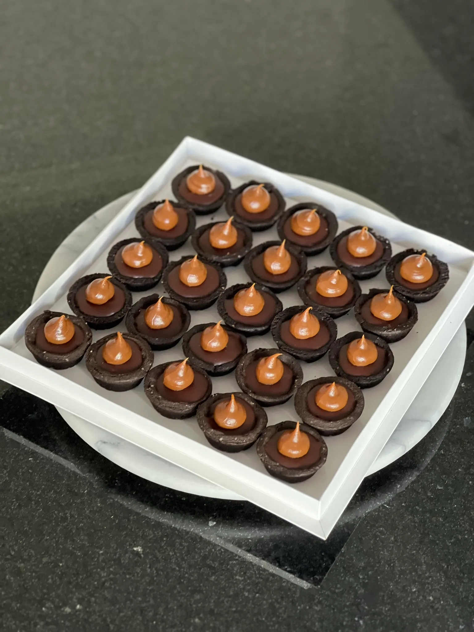 Mini pastelería de aprox 4.5/5cm de diámetro, exhibidos en una bandeja de 24 cm.